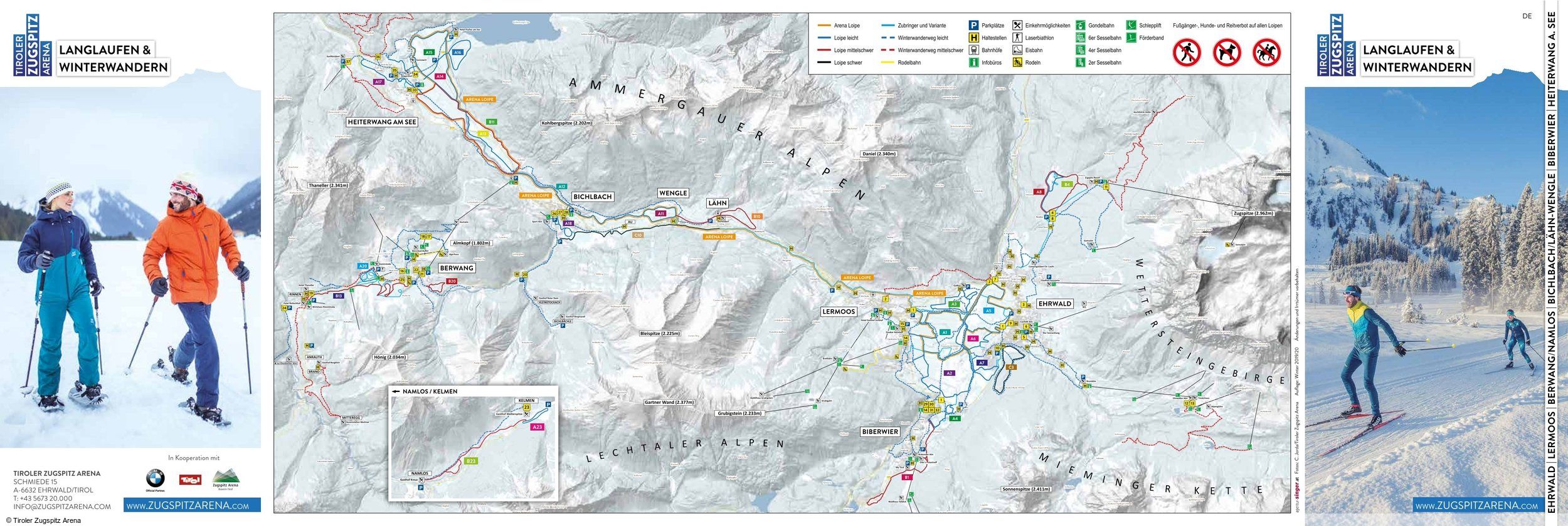 The region around the Zugspitze offers a total of 130 kilometres of cross-country trails. Garmisch-Partenkirchen itself has 28 kilometres of cross-country trails, Grainau another 12 kilometres. These also include some skating-style trails. Beginners will find easier and more scenic trails in the area around Garmisch-Partenkirchen. Those who are new to Nordic skiing have the opportunity to take cross-country skiing lessons.